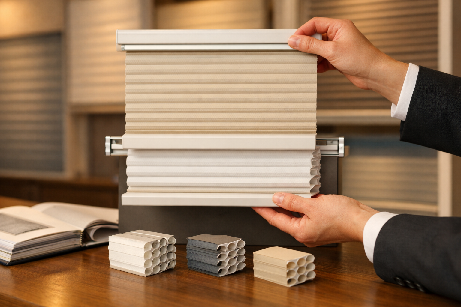 See and feel real fabric swatches, wood finishes, and material options in your actual space — where the light hits them the way it will every day.